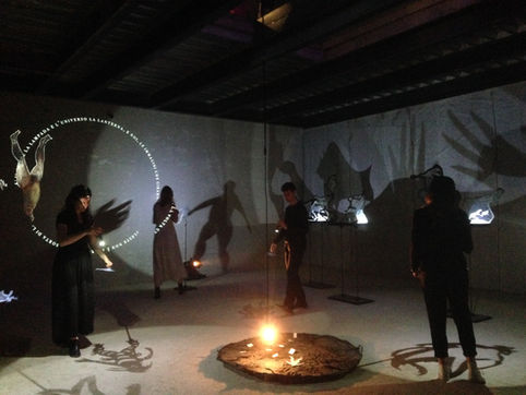 Nel buio di questa stanza–caverna, il pubblico è stato invitato a riattivare lo sguardo e i sensi, tornando simbolicamente all’origine, per attraversare un tratto di quel cammino che lega l’umanità all’ombra: quando essa era percepita come emanazione dell’anima e di cui ancora oggi conserviamo tracce profonde, seppure inconsce.